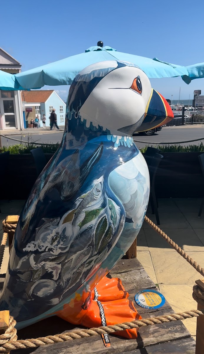 A rare treat of fish and chips followed by a very indulgent dessert ... all, might I add, being gluten free! Excellent service from start to finish, a warm welcome, a good menu to choose from including a gluten free one. Food was quickly served, hot and very, very tasty indeed. Staff were friendly and helpful and there was a really nice atmosphere. There was seating inside and outside, I opted to stay inside; the outside area has great views. I've added photos of the puffin has been 'on show' here, too.