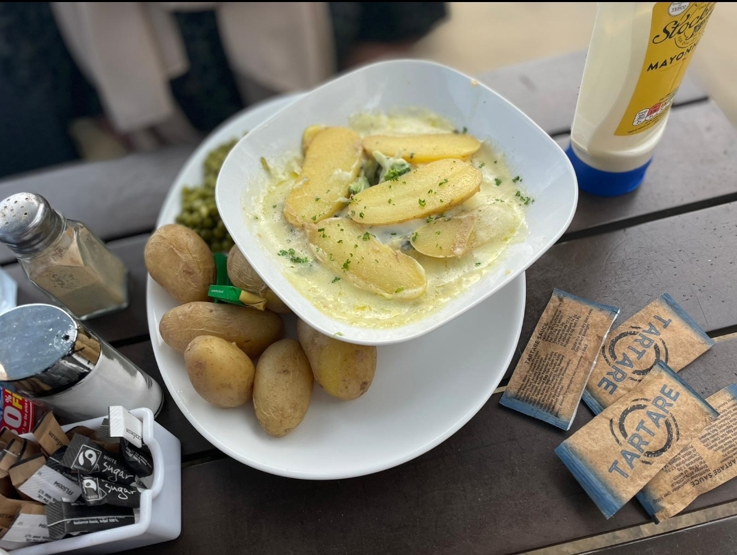 The menu feels like an affectionate nod to coastal and café classics, thoughtfully prepared and easy to savor. From hearty breakfasts that quietly set the tone for the day, to indulgent gluten-free treats that surprise with their richness, the offerings are made to suit different moods and moments. Whether it’s a creamy coffee shared alongside a toasted teacake or a portion of fish and chips enjoyed outside with a sea view, each bite carries the kind of familiarity that lingers beyond the meal.